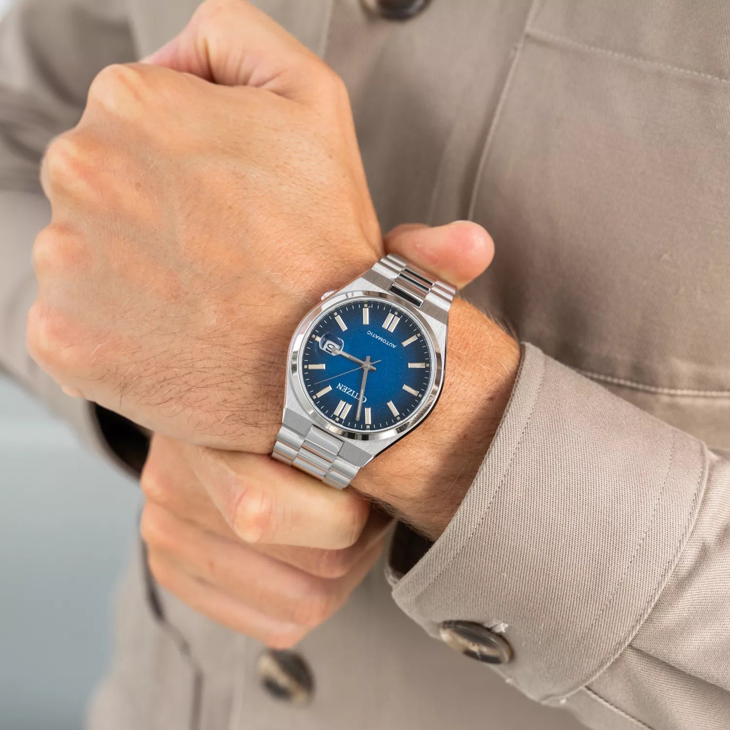 El Citizen NJ0151‑88L de la colección Tsuyosa combina un estilo deportivo moderno con precisión mecánica. Su esfera azul degradada con acabado “sand‑blasted” y lupa sobre la fecha otorgan elegancia funcional, mientras que su movimiento automático 8210 y brazalete integrado lo convierten en un reloj versátil, confiable y con fuerte presencia diaria.