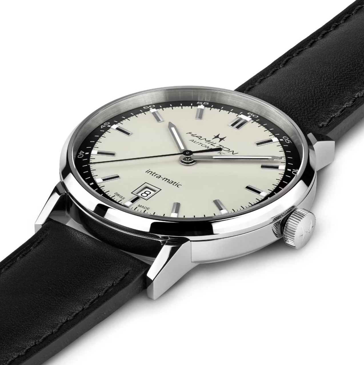 El Hamilton H38425720 fusiona el estilo vintage de los años 60 con tecnología moderna. Su esfera bicolor beige y plateada, caja de 40 mm y correa de piel negra le dan una elegancia atemporal, ideal tanto para la oficina como para salidas de fin de semana.