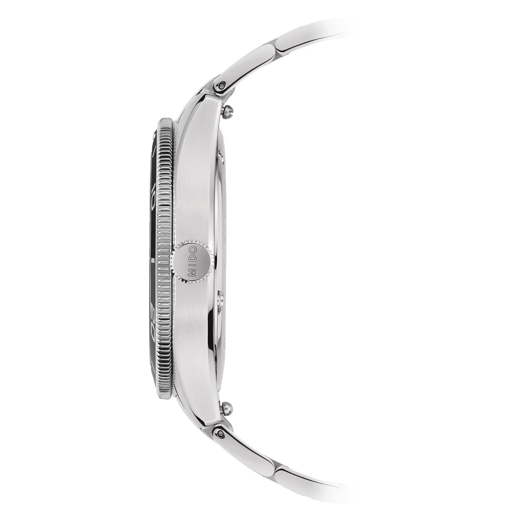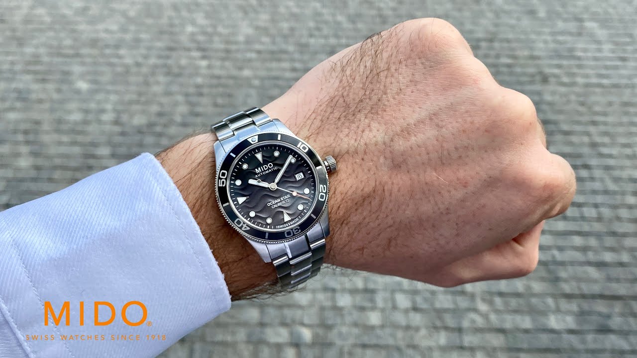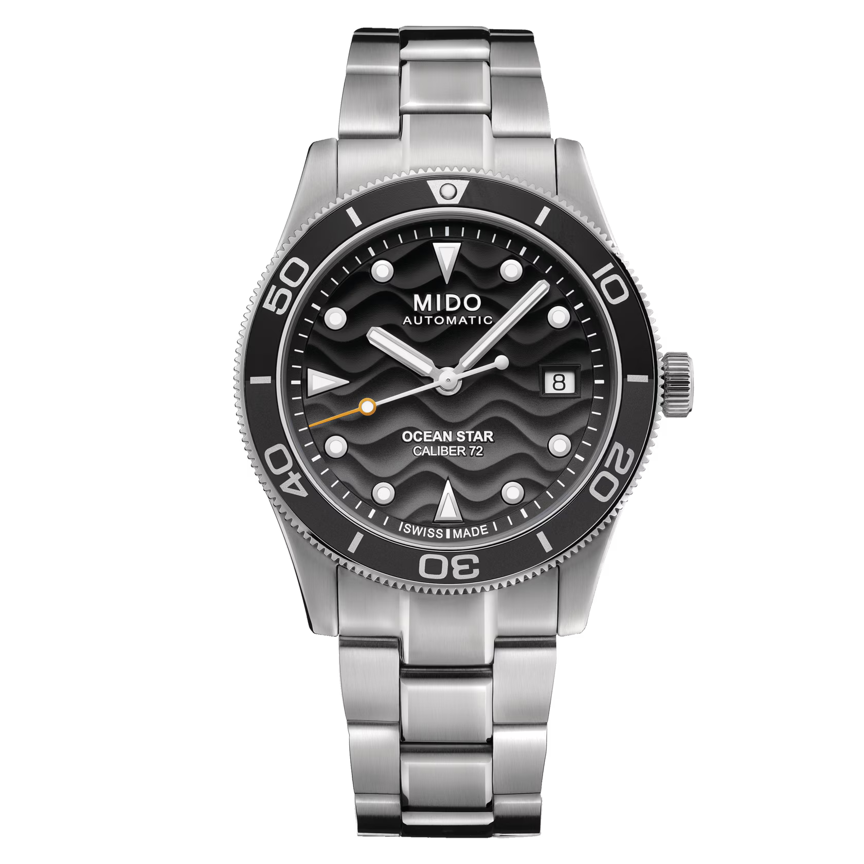 El Mido Ocean Star 39 Gradient Black fusiona elegancia con funcionalidad. Su carátula negra con efecto degradado y relieve tipo olas aporta profundidad visual, mientras que el bisel giratorio unidireccional y resistencia al agua de 200 m lo hacen ideal tanto para el agua como para el uso urbano.