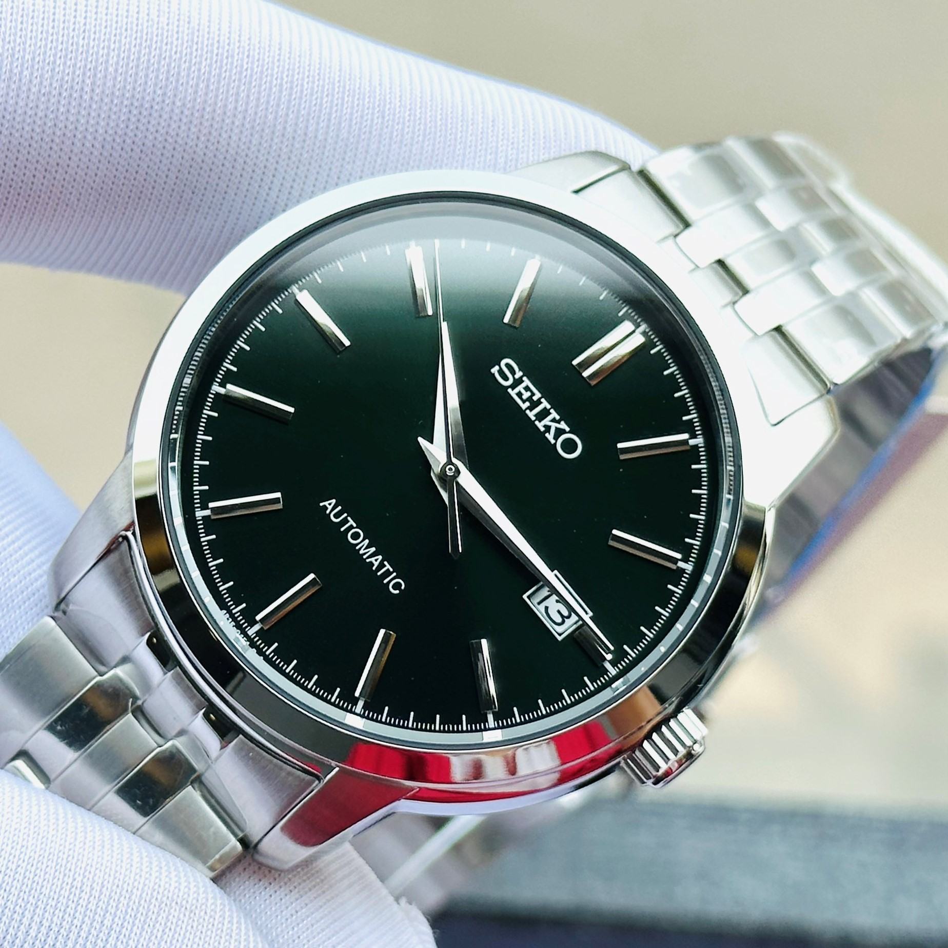 El Seiko SRPH89K1 combina elegancia clásica con precisión japonesa. Su esfera blanca con acabado rayos de sol y brazalete de acero inoxidable lo convierten en un reloj automático versátil y sofisticado, ideal para el uso diario o eventos formales.