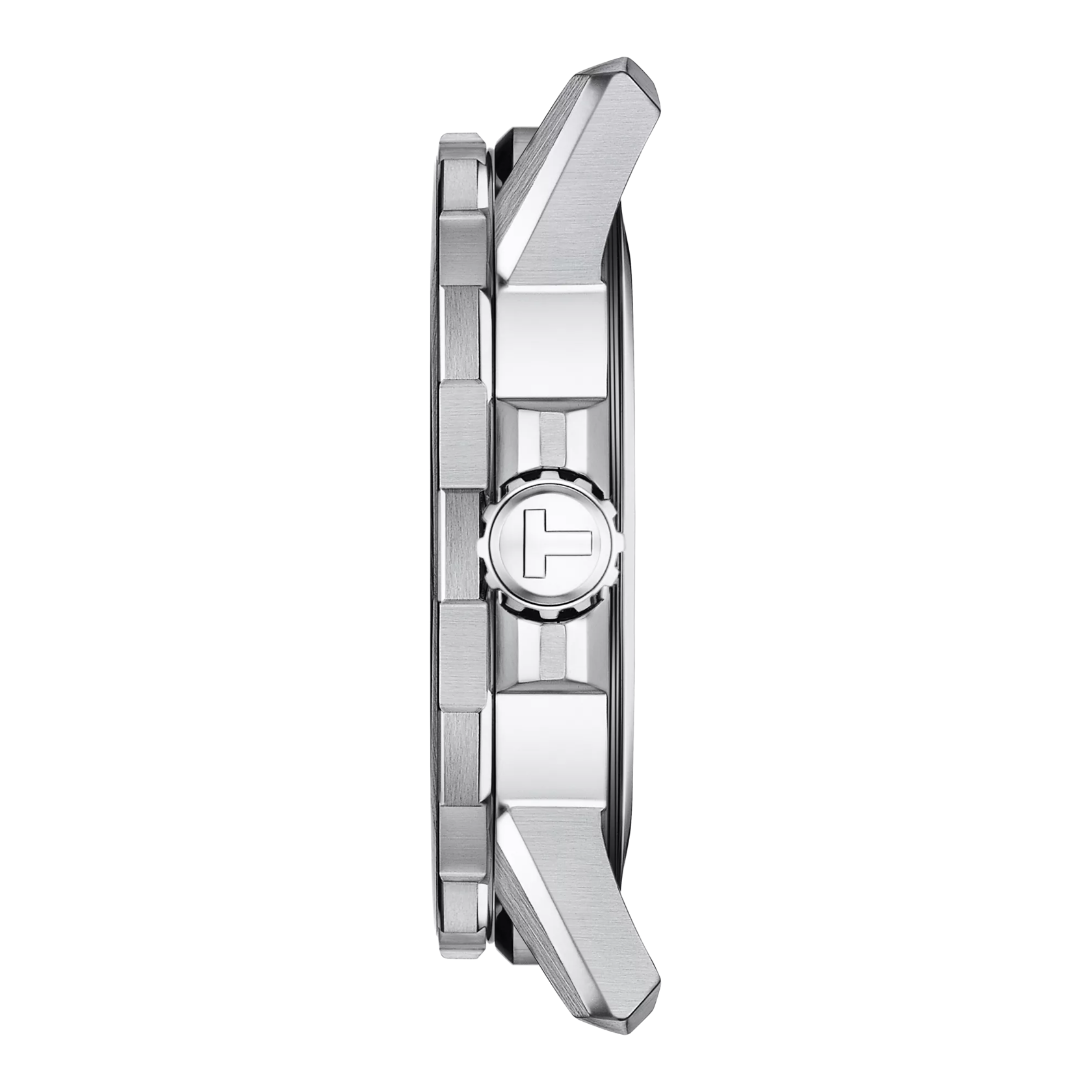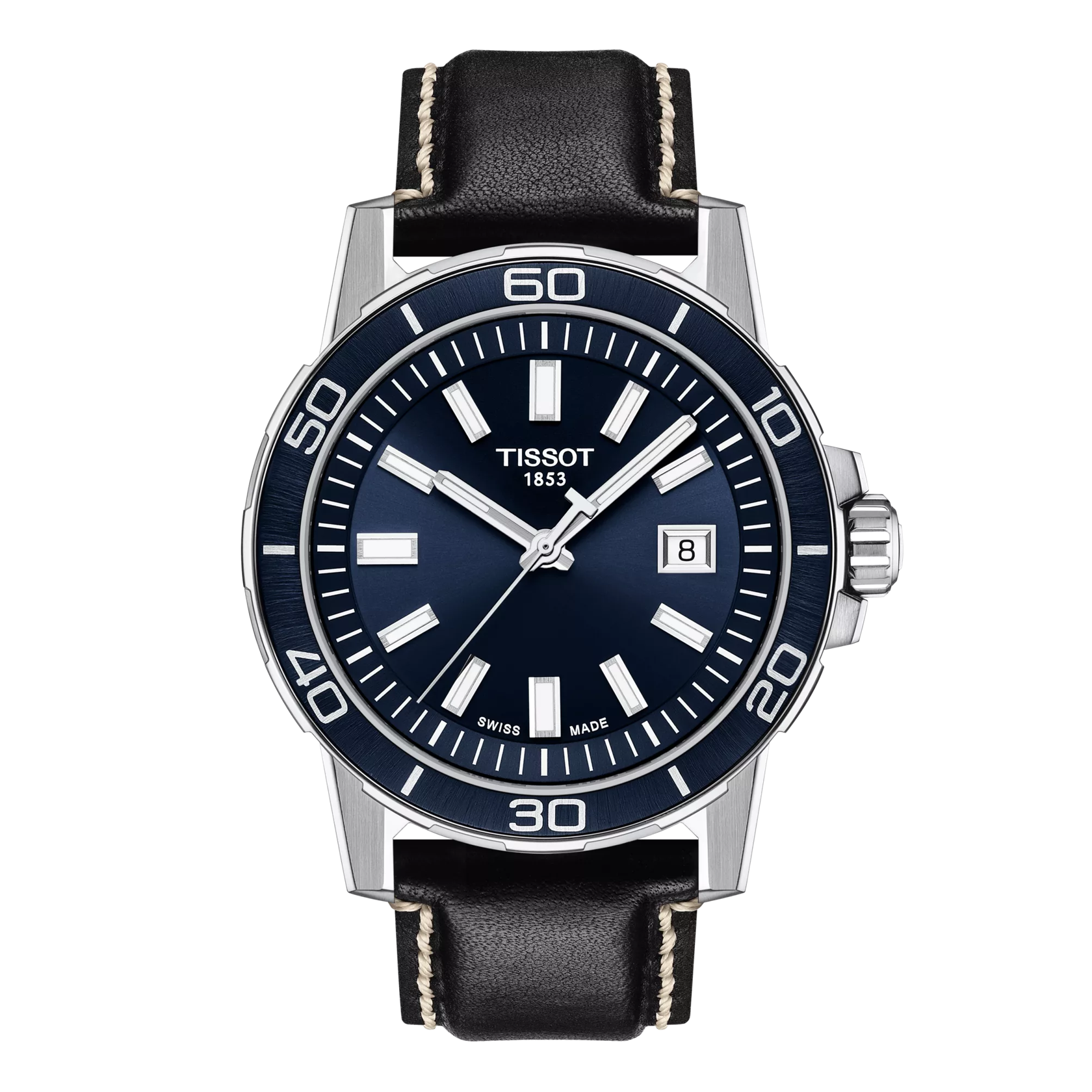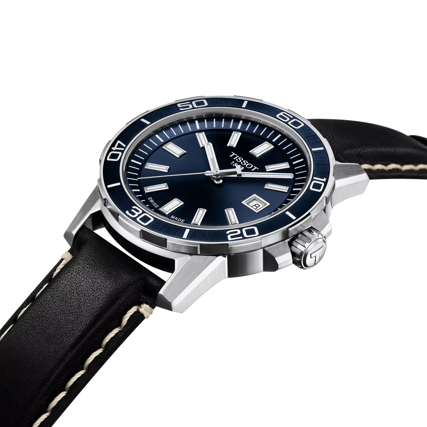 El Tissot Supersport Gent combina un diseño deportivo con elegancia sobria. Su esfera azul intensa acentuada por un bisel azul de aluminio y correa de cuero negro le dan un aire dinámico y moderno. Equilibrio ideal entre funcionalidad diaria y estilo contemporáneo.